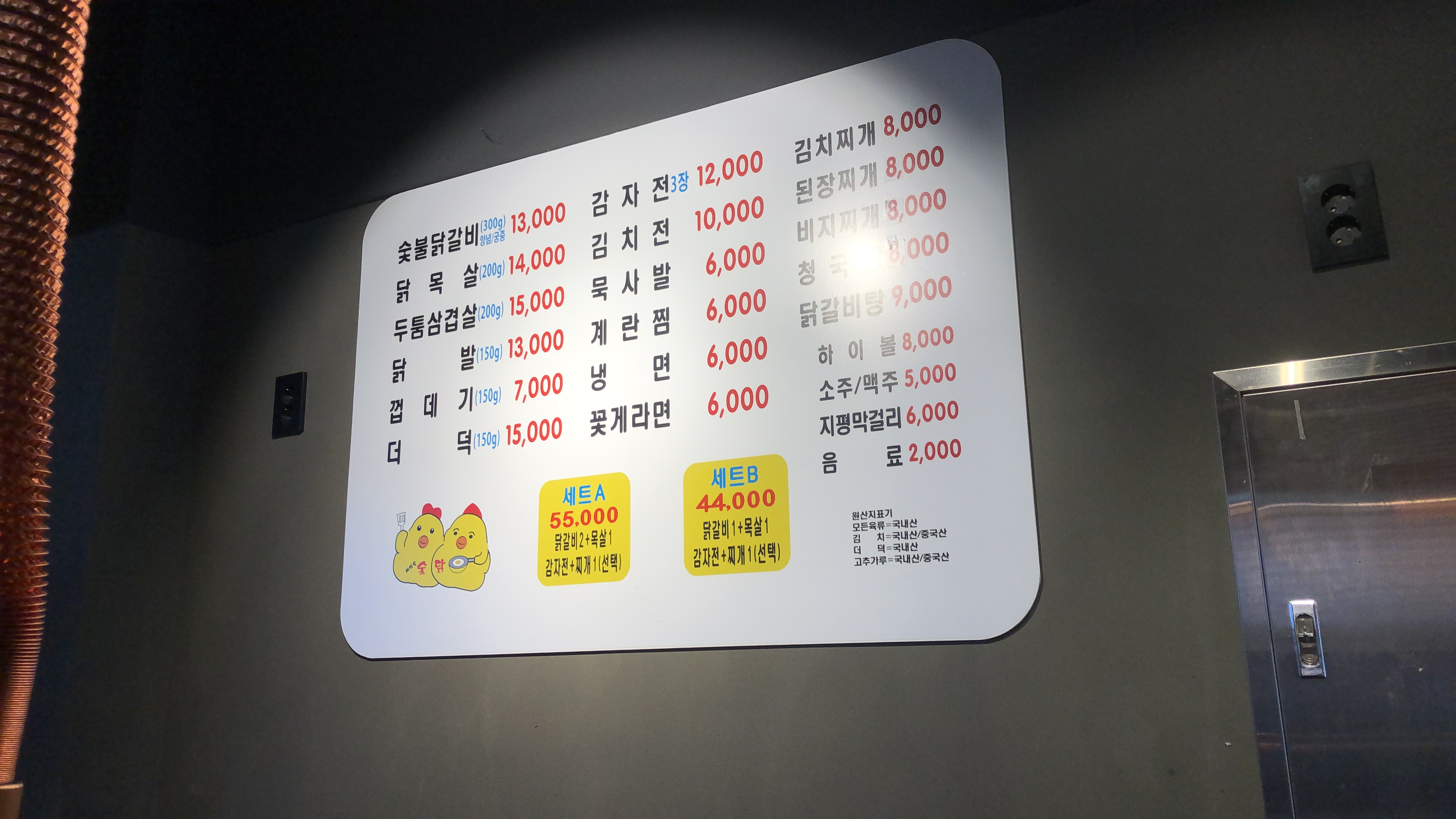 맛있는 숯불닭갈비를 제공했다고 하는데
