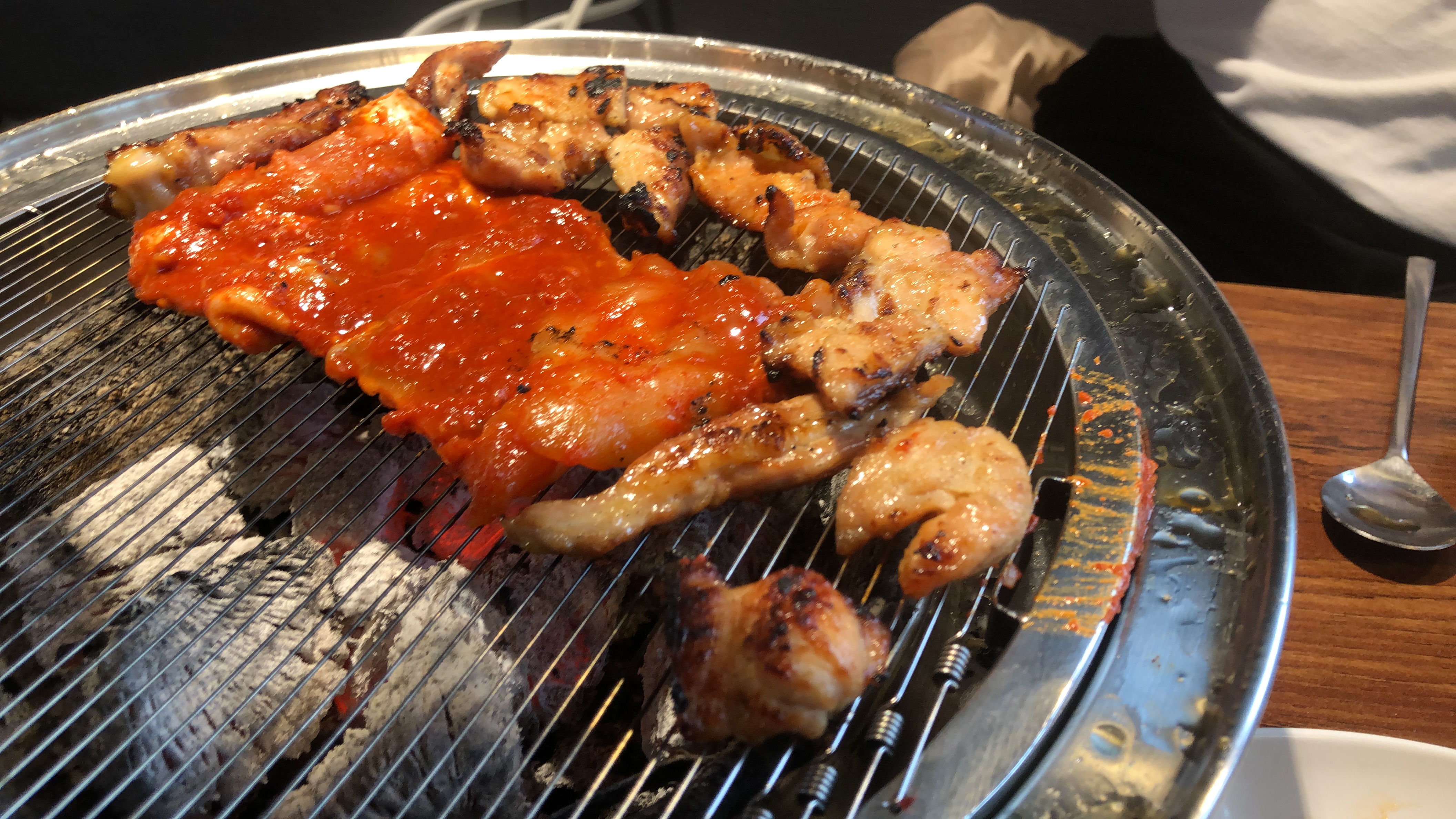 바로 판을 바꾸어 닭갈비도 연이어 구웠어요