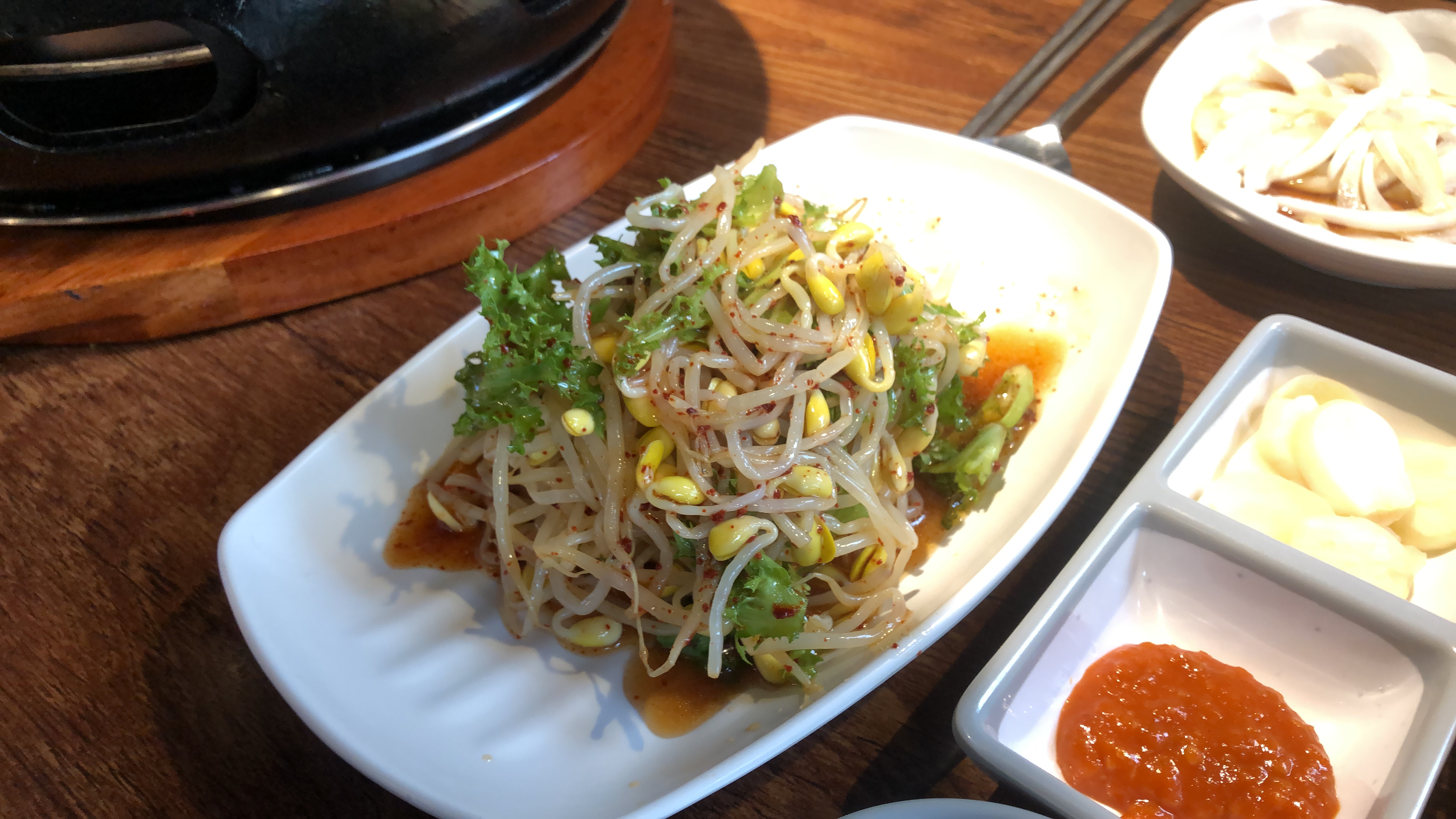 매콤달콤한 저 콩나물 무침이 맛깔스럽더라고요